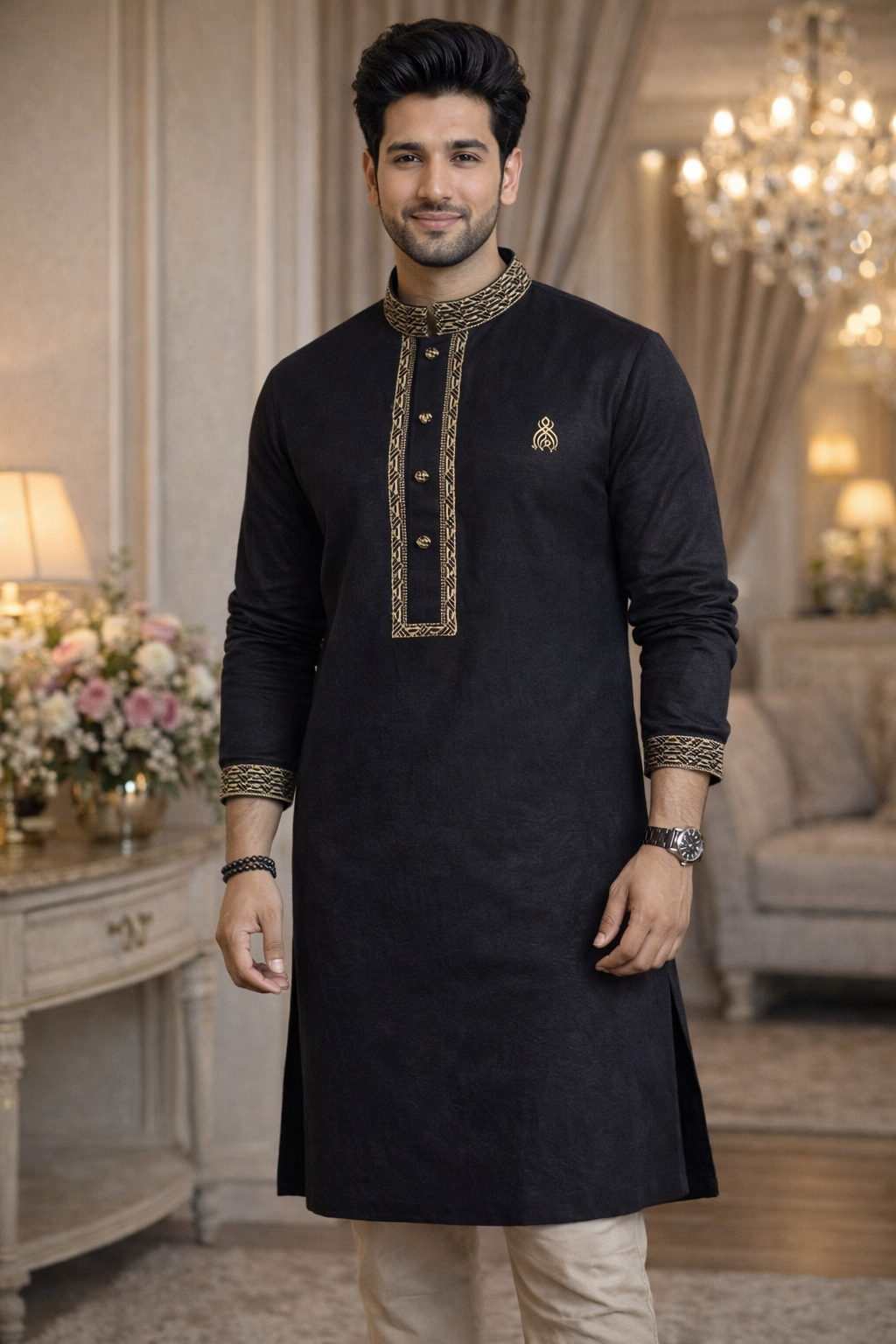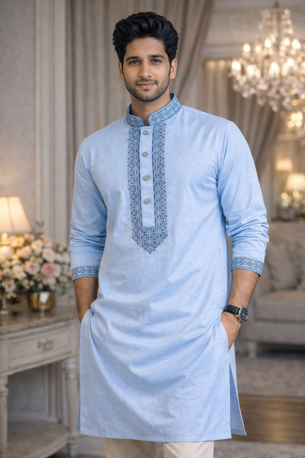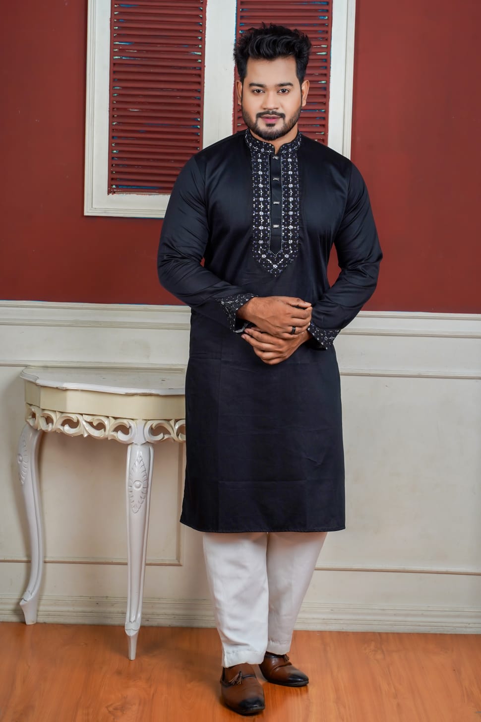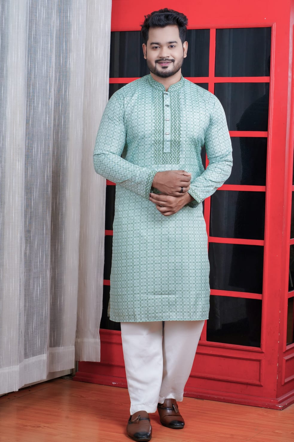 কাপড়: এগুলো প্রিমিয়াম সলিড কটন বা লিনেন টেক্সচার্ড কাপড় দিয়ে তৈরি, যা দেখতে যেমন রাজকীয় তেমনি গরমে পরার জন্য বেশ আরামদায়ক।