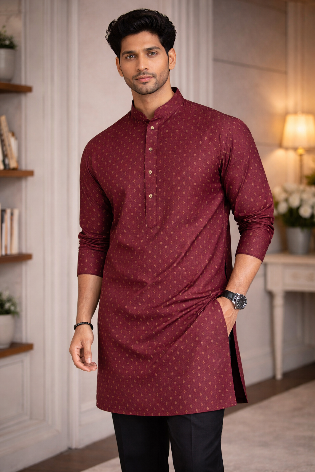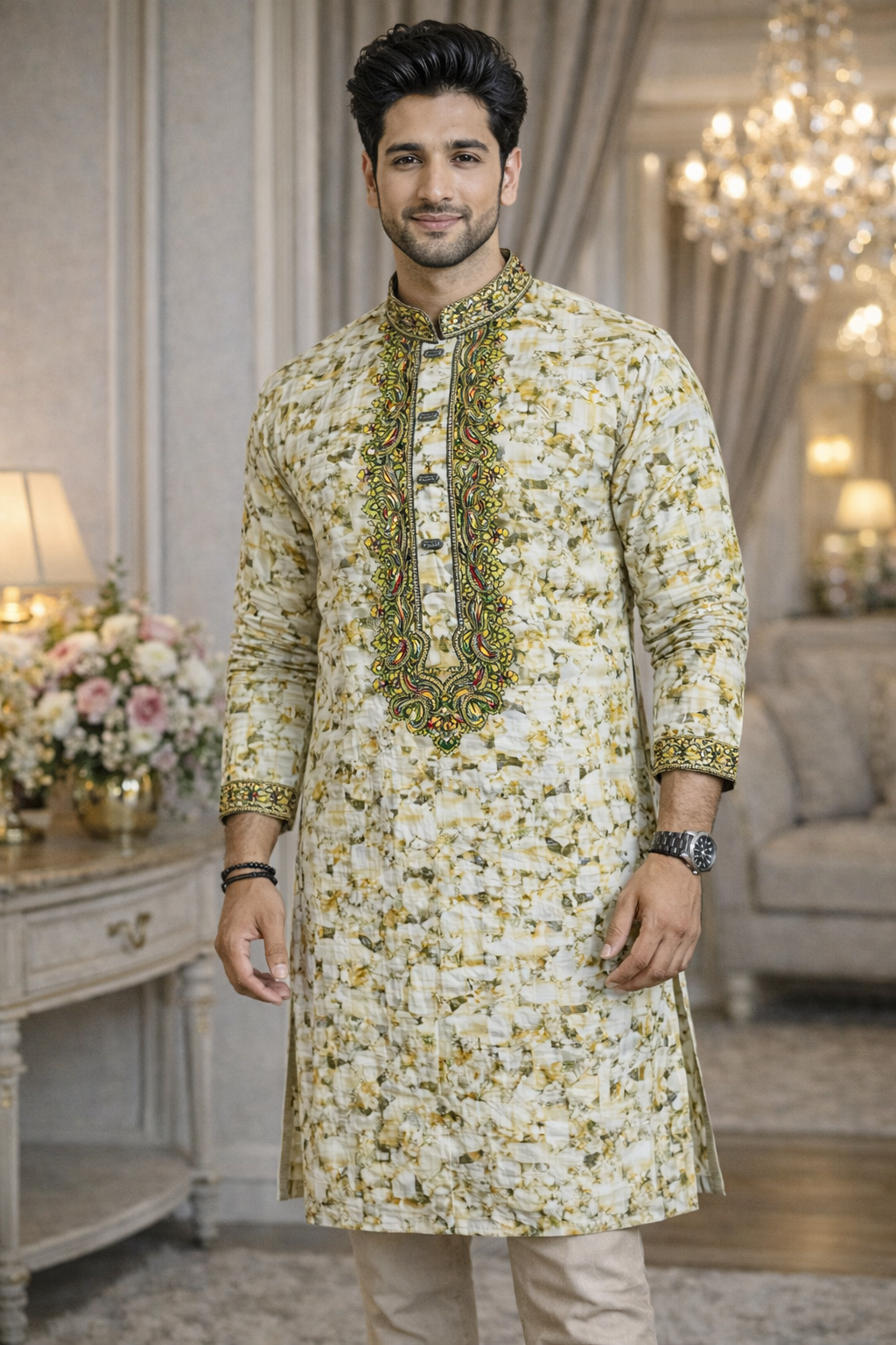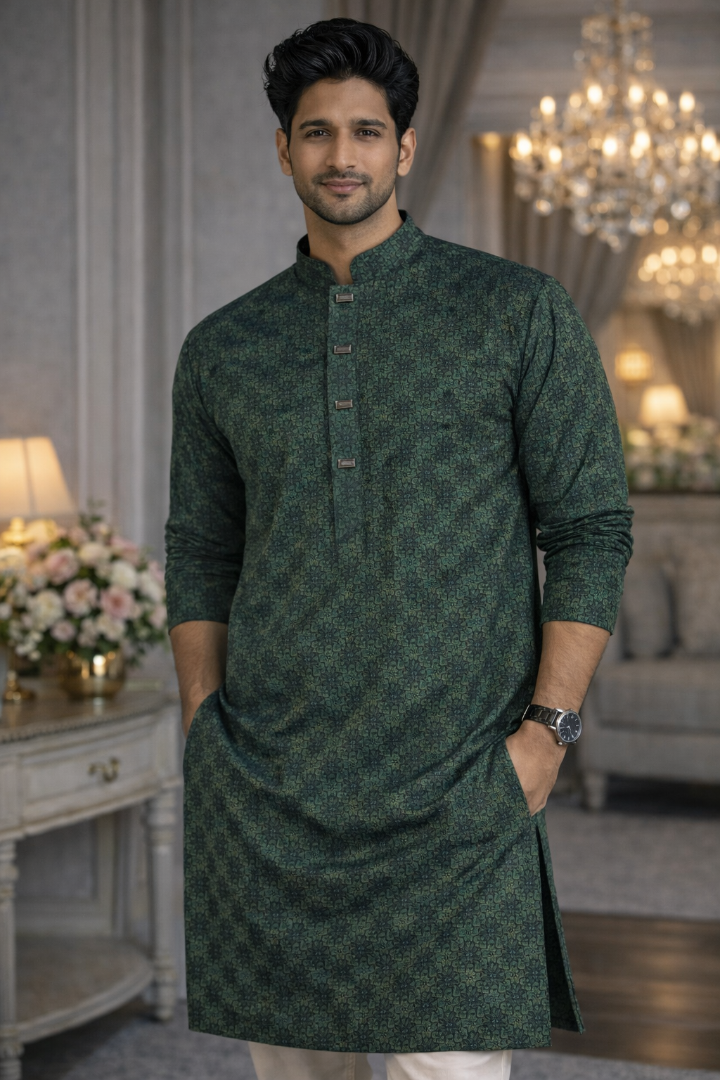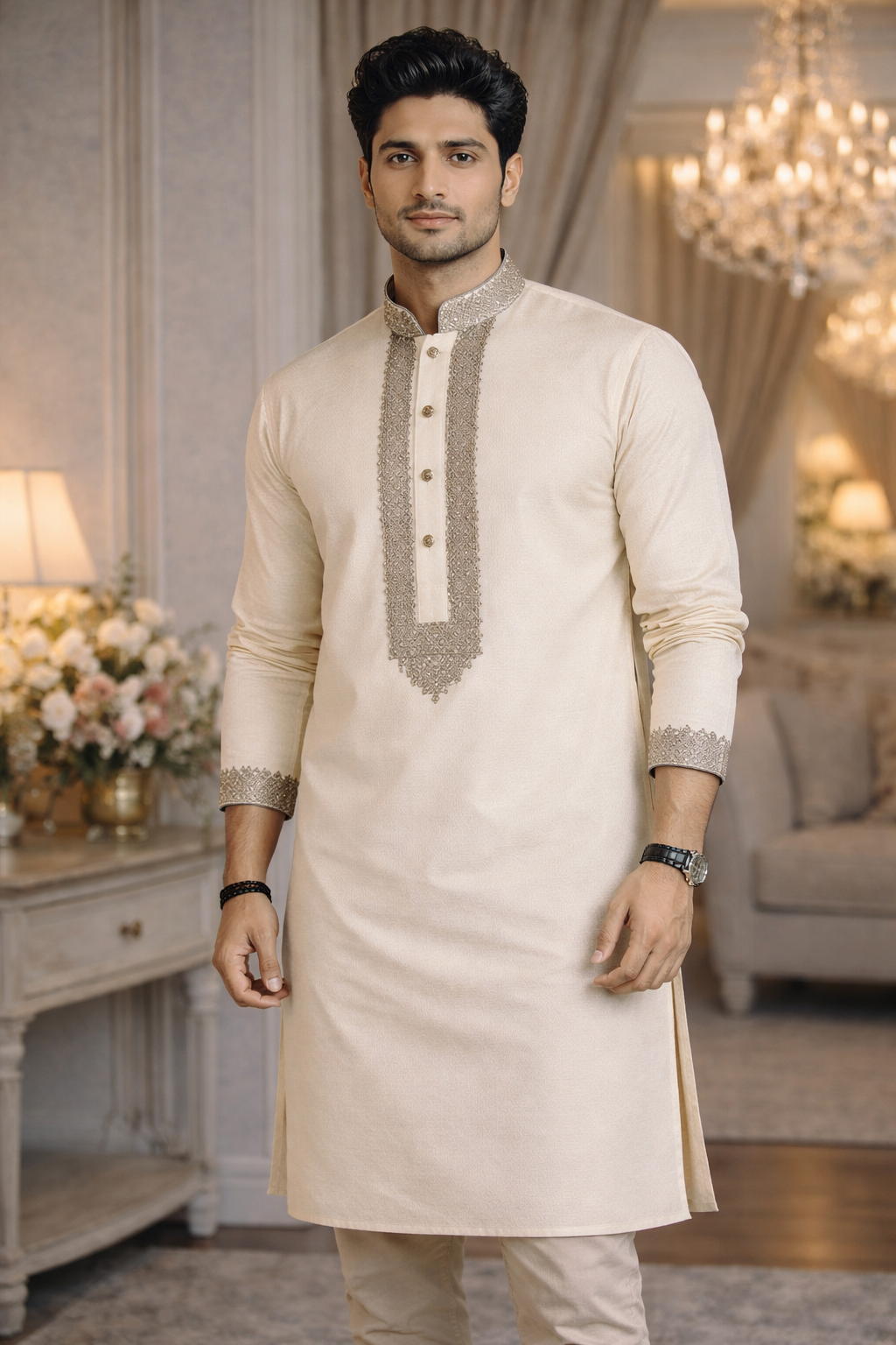 কাপড়: এগুলো প্রিমিয়াম সলিড কটন বা লিনেন টেক্সচার্ড কাপড় দিয়ে তৈরি, যা দেখতে যেমন রাজকীয় তেমনি গরমে পরার জন্য বেশ আরামদায়ক।